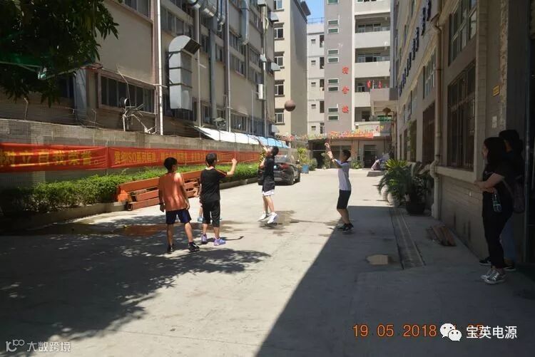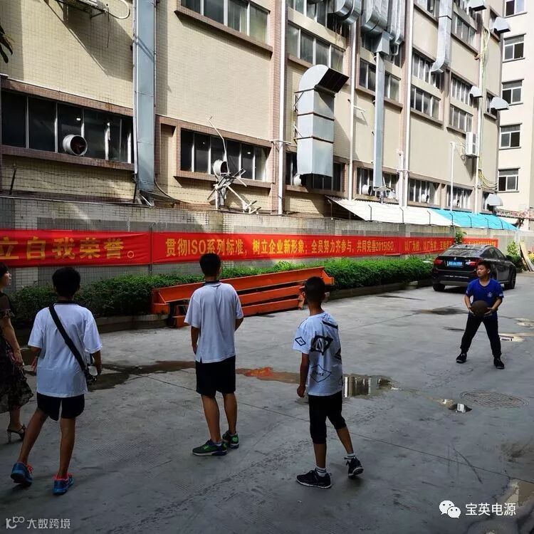 厂房空地设置了篮球架,供工人们休闲娱乐,各种励志标语鼓舞人心。
