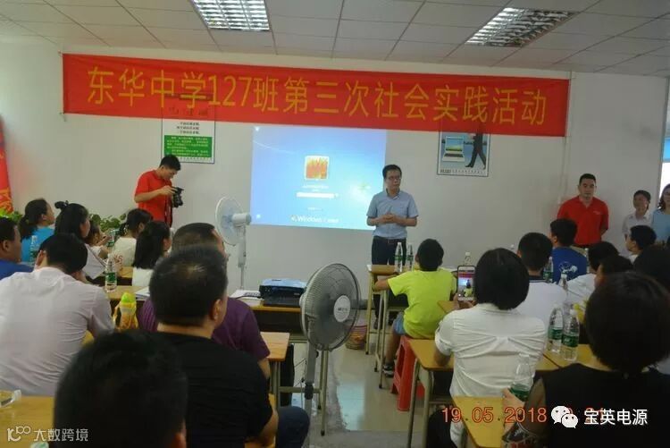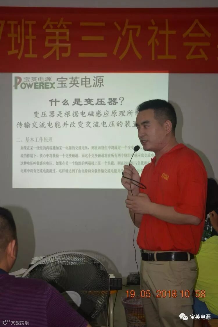 正式开始上课了:宝英的优秀工程师李正文用英文和日语对宝英电源作了简单介绍。同学听得一楞一楞的,估计回学校会认真学英语了吧。因为真的好尴尬呀!工程师讲的啥?我咋一句没听懂啊😓