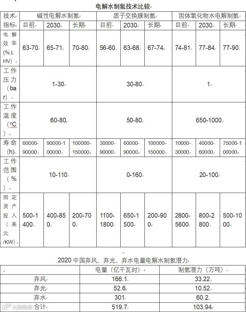 电解水制氢,制备一立方米氢气需要耗用5千瓦时的电,同样制取一立方米氢气,绿氢的成本是灰氢的3-5倍,是蓝氢的2倍以上。绿氢要在市场中获得经济性和竞争力,需要将电价控制在0.3元/千瓦时,甚至更低。电解水对水的最小消耗是9千克水/千克氢气。综合而言,利用光伏发电和风力发电产生氢气的总耗水量平均为32千克水/千克氢气和22千克水/千克氢气。