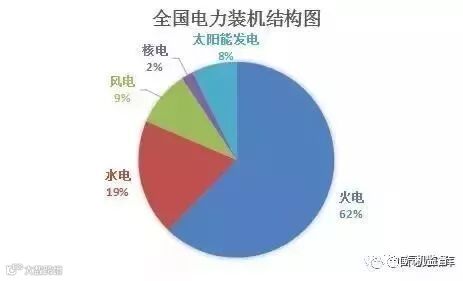 截止2017年底,全国火电装机110604万千瓦、水电34119万千瓦、核电3582万千瓦、风电16367万千瓦、太阳能发电13025万千瓦。
