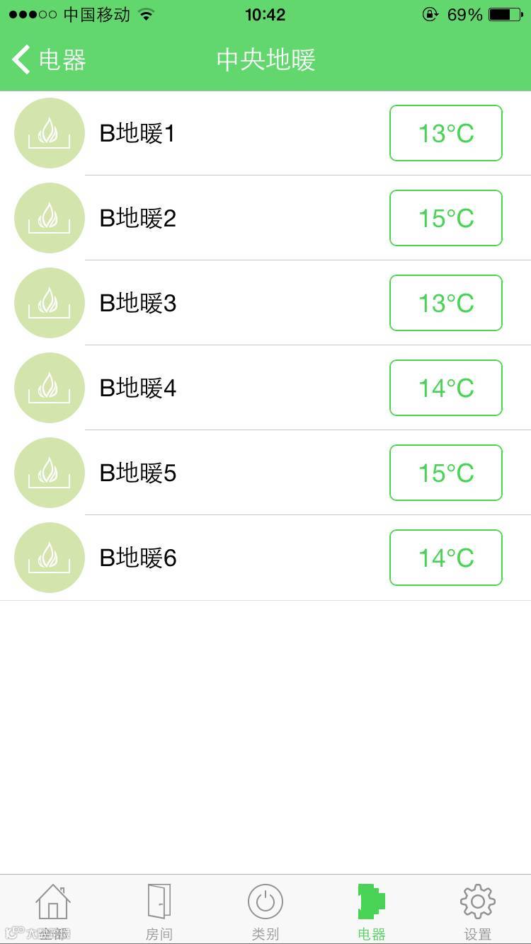 4、地暖系统测试,同样在APP中编制每个对应控制面板名称、位置等。