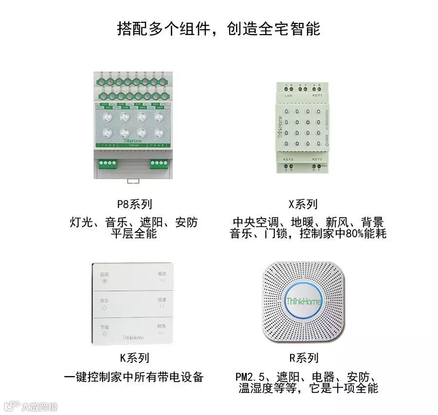 X系列,实现专业设备(背景音乐、智能门锁、中央空调、中央地暖、新风、智能水表等)与ThinkHome云系统的互联互通
