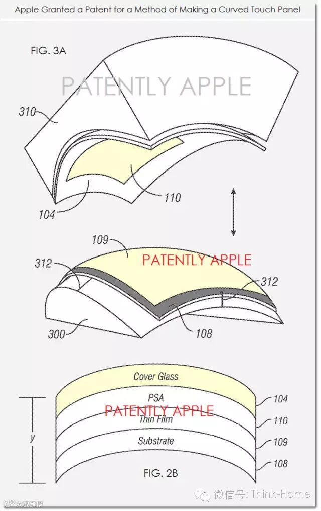 苹果目前被正式授予了这项与触摸板形成有关的发明,特别是可以至少形成一个使用轻薄柔性基板组成的感应曲面触摸板。从苹果的专利描述图中我们可以看出,普遍中是一个弯曲复合柔性基板覆盖表面的示范系统。用于示范目的,弯曲的覆盖面沿两个轴弯曲,然而,覆盖的表面有着多种曲率,多种角度,可以沿着一个或多个轴使用。而另一个相关专利则描述了一个恒壁触摸感应面板。