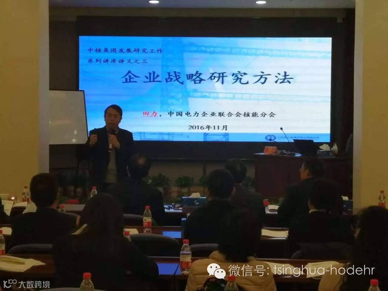 2016年11月17日,清华厚德董事长、中国电力企业联合会核能分会副会长兼秘书长田力老师应邀在中核集团技术与经济研究总院报告厅为中核集团讲授了《企业战略研究方法》的专题讲座。本次讲座是中核集团政研企管部组织的发展研究工作系列培训的第三讲,由中核集团政研企管部副主任李光亚主持。中核新能源总经理钱天林、中核集团技术经济研究总院院长潘启龙、中国原子能研究院副院长柳卫平等领导人员以及在京单位政策与战略管理研究业务线的专业人员参加了本次讲座。