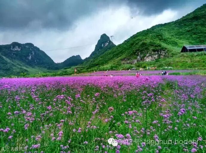 广西柳州市柳城县红马山农庄盛开着一片紫色的的薰衣草花海。看过的人们都决定以后婚纱照在那拍。