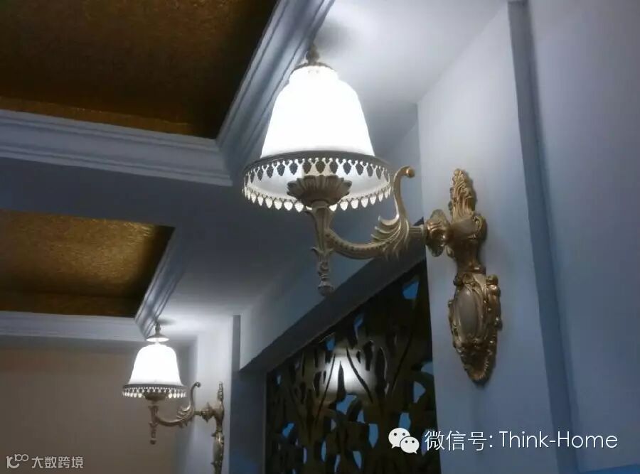 优雅低调的壁灯映射出暖意白光: