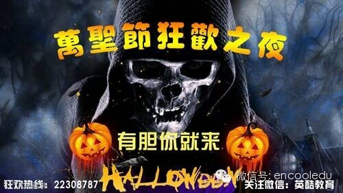 10月31日万圣节夜里,刺激欲来!欢乐将至! 2014年万圣节狂欢派对将于10月31日晚在福民广场英酷教育盛装上演。正义使者,邪恶化身,他们将齐聚今天,与您一起欢度万圣节。如果你够胆,如果你想与他们互动欢唱,那就请大家一起来揭开万圣节那神秘的面纱吧。 在各项趣味活动中将给你一个不一样的玩转中西万圣节,还你一个与众不同的2014万圣节。来吧!小伙伴们,带上你的爸爸妈妈,拉上你的亲朋好友一起来享受今天英语万圣之夜吧!