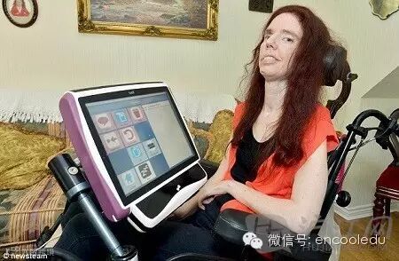 韦伯斯特今年42岁,每天学习三个小时。学习时,她通过轻推头部两侧的按钮来移动屏幕上的鼠标,通过眨眼键入字母。