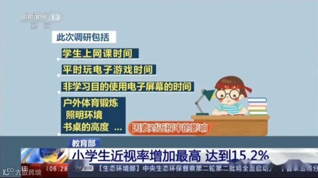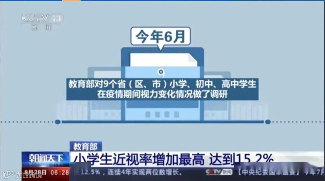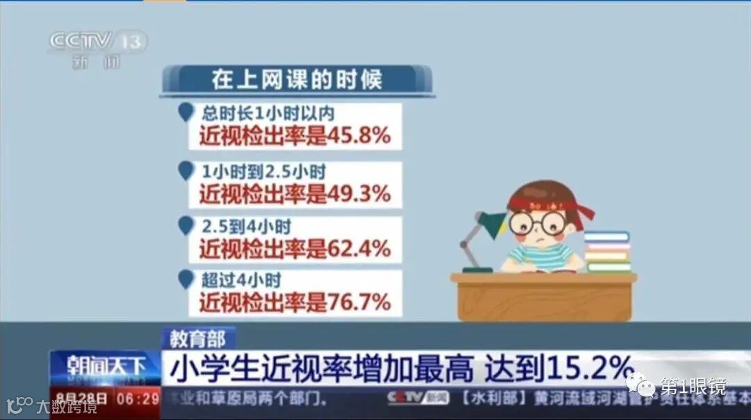 近日,教育部发布了中小学生视力情况抽样调查,结果显示,近半年中小学生的近视率增加了11.7%,其中小学生的近视率增加了15.2%。教育部要求,新学期开学之后,要控制在线学习的时长,并增加体育锻炼。