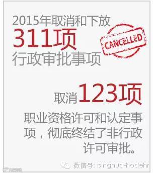 7.【报告内容】取消和下放311项行政审批事项,取消123项职业资格许可和认定事项,彻底终结了非行政许可审批。
