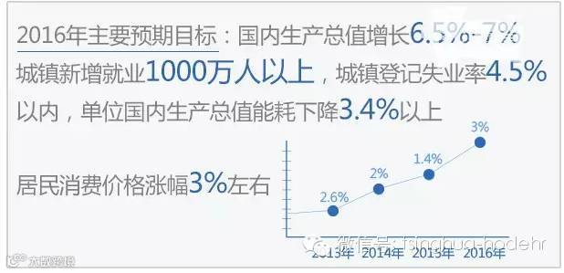 11.【报告内容】2016年主要预期目标:国内生产总值增长6.5%—7%,居民消费价格涨幅3%左右,城镇新增就业1000万人以上,城镇登记失业率4.5%以内,单位国内生产总值能耗下降3.4%以上。