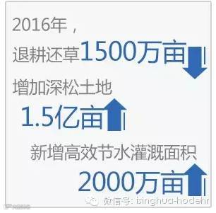 14.【报告内容】退耕还草1500万亩,增加深松土地1.5亿亩,新增高效节水灌溉面积2000万亩。