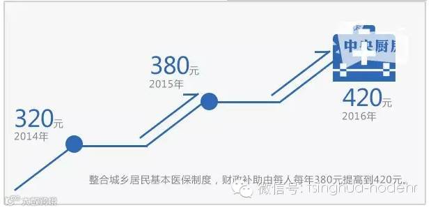 16.【报告内容】整合城乡居民基本医保制度,财政补助由每人每年380元提高到420元。