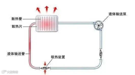 液冷散热器的组成部分包括水冷块、水泵、水箱、冷排、管道、各式接头换热器等,各部件协同有序工作。水冷块等部件与CPU等发热部件接触并吸收热量,冷却液借助水泵提供的动力在管道内流动,带走热量。水泵提供的动力使得冷却液低温吸收热量并流出,冷却液在水路中不断循环,及时带走热量,将设备温度保持在稳定范围。