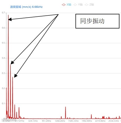 风扇振动因为其振动的复杂性被分解为不同频率和不同振幅的谐振,将谐振的幅值按频率排列成的图形被称为振动频谱。其中,与转速频率成正比的振动频率被称为同步振动,同步成分是旋转频率的整数倍或者整分数倍,如一倍频(1X),二倍频(2X),三倍(3X)等。根据大量现场测试频谱结果显示,常见的转子振动与一倍频(1X)有关,下面仅就一倍频(1X)增大的情况分析。