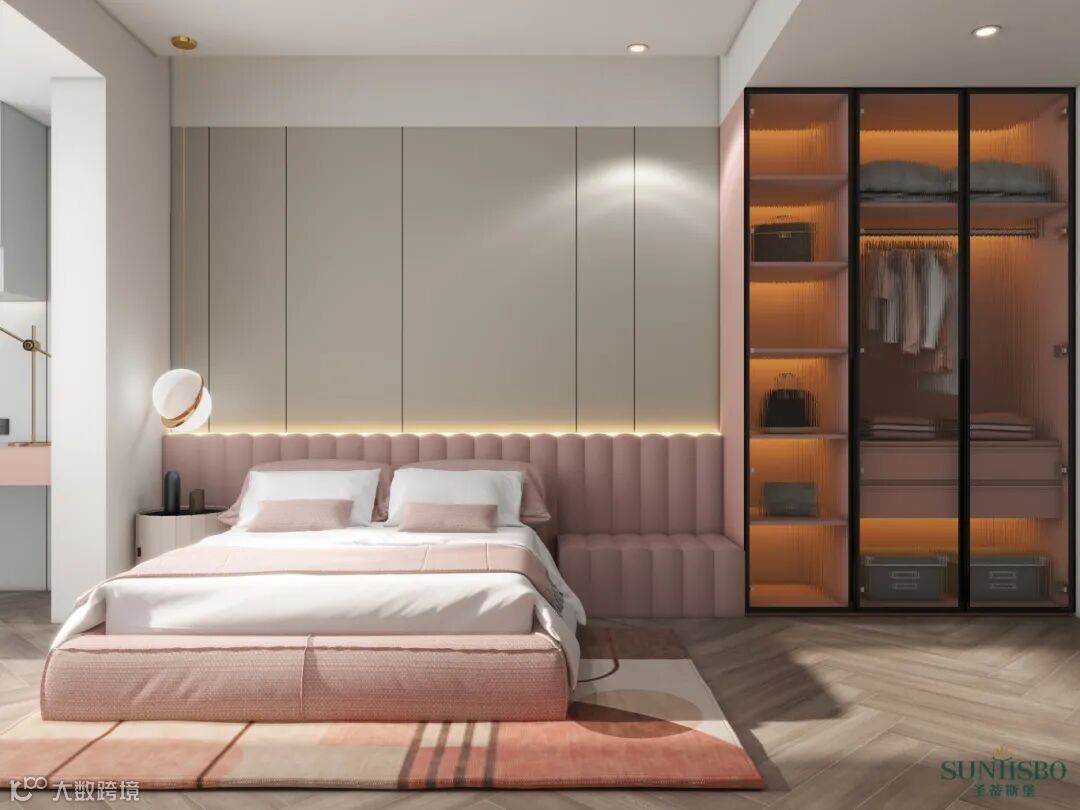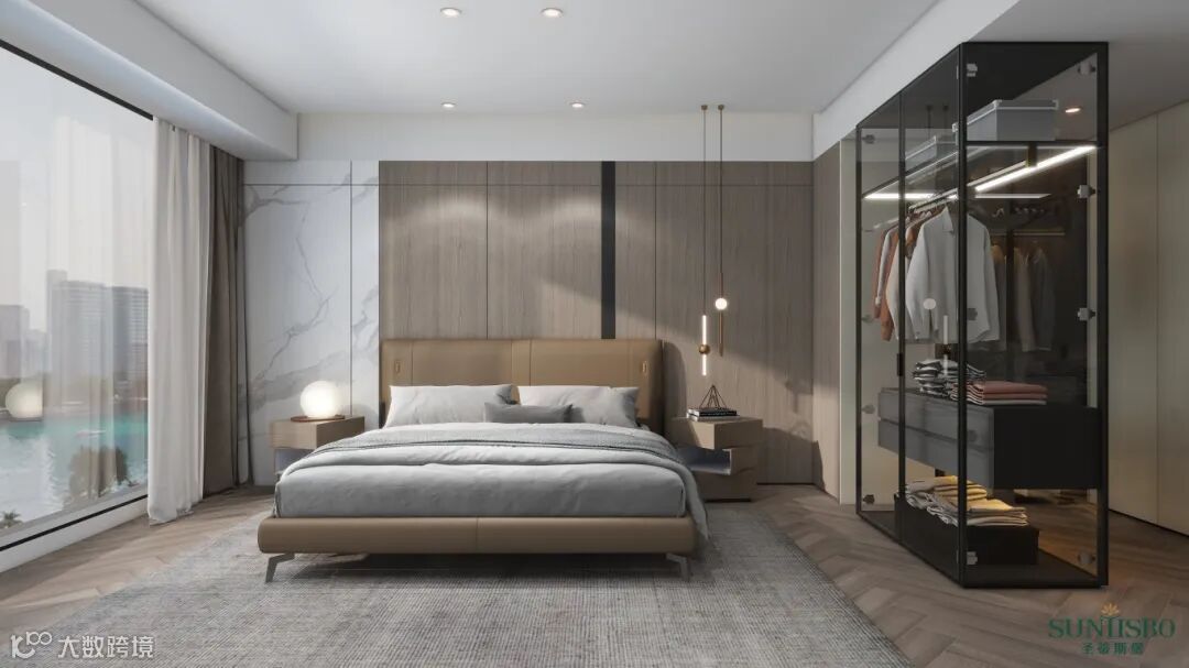 主卧没有繁复的装饰,也没有琳琅满目的压迫感,简单的线条描摹出纯粹的休息环境,打造一种属于慢生活的低调质感。