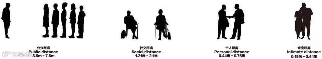 美国人类学家爱德华·霍尔博士为人际交往划分了四种距离,戈夫将相遇定义为「公共场合人们之间持续性的相互注意」。人类是天生的社会性动物,人类就是生活在不同规模和类型的群体之中。社会群体是由关系建构起来的,这种关系是由个人所处位置的相关性构成的。