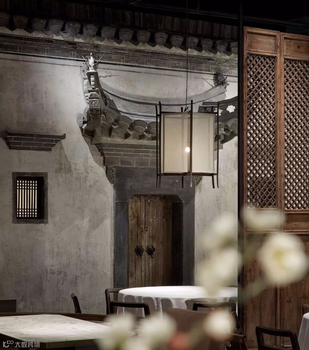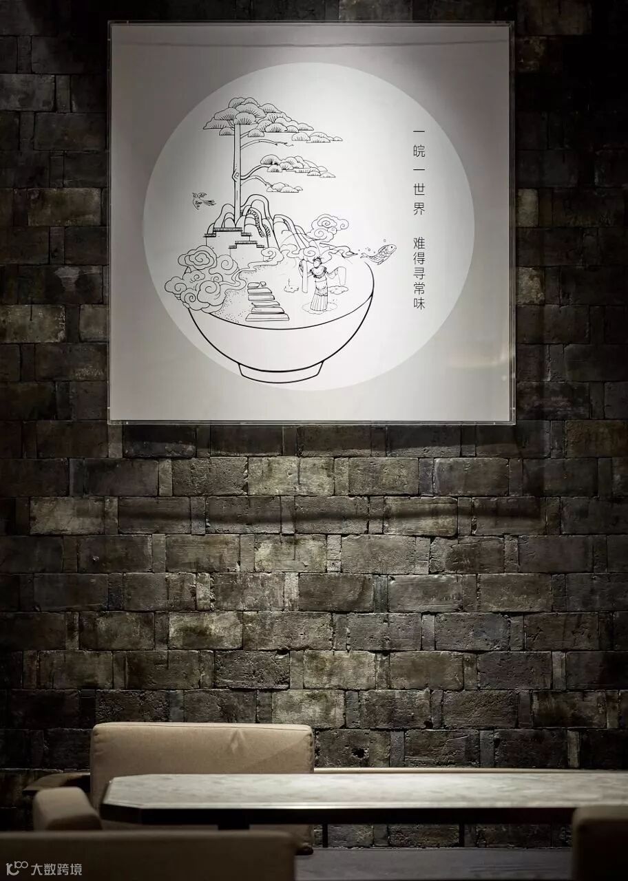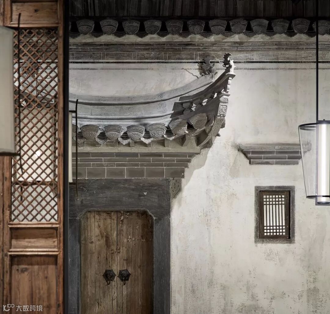 继而在餐厅内完美呈现一面徽派建筑的立面造型。