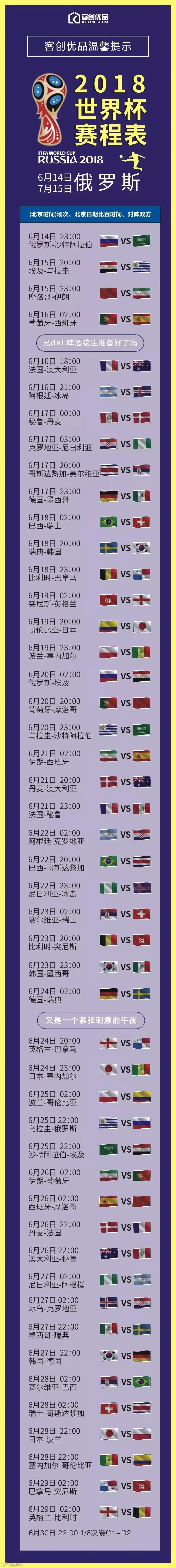 客创优品播报:《世界杯》看球时间表