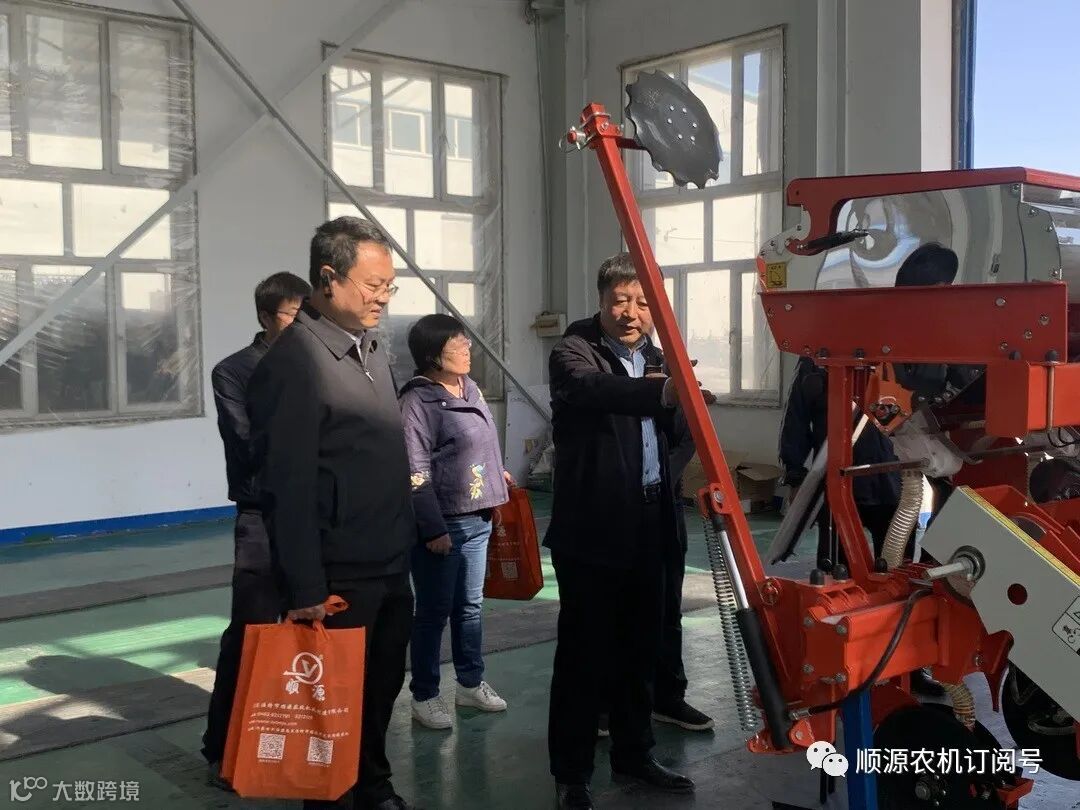 下午,农业农村部农机化总站粮油机械处处长王超、内蒙古自治区农牧业科学院院长路战远等领导莅临顺源农机,参观了播种机生产的整个工艺流程,包含数控加工、激光切割、焊接、喷涂、组装等车间。顺源农机总经理刘守源全程陪同讲解,主要讲解了目前顺源播种机的专利技术,包含种子补偿器、余行停播、排种器、风机、一垄双苗带等。目前已经用于25项专利技术。