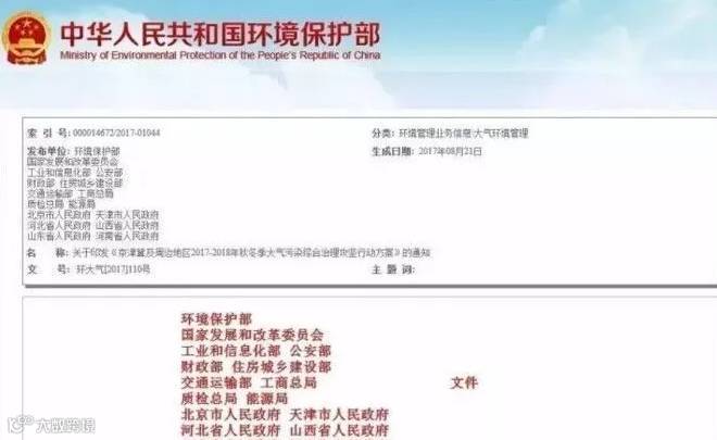 近日,环保部、发改委、工信部等多部委及北京、天津、河北等省市共同印发《京津冀及周边地区2017-2018年秋冬季大气污染综合治理攻坚行动方案》。方案提出,2017年10月至2018年3月,京津冀大气污染传输通道“2+26”城市PM2.5平均浓度同比下降15%以上,重污染天数同比下降15%以上。钢铁有色水泥行业全面限产停产,水泥建材全部停产。采暖季唐山等城市钢铁限产50%,电解铝和氧化铝企业限产30%以上。