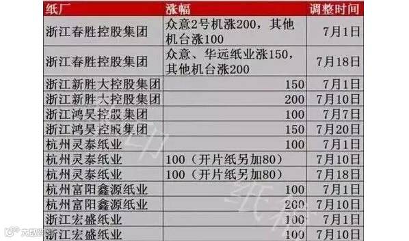 原材料疯涨之后,中间行业开始报复性上涨。7月浙江省白板纸涨价成灾,纸厂轮番掀五轮涨价,累计最高涨幅达460元/吨。而本月华东、华南、华中、西南均有涨价,截至目前涨价队伍已扩大至44家纸厂,纸种涉及白板纸、瓦楞纸、箱板纸、牛卡纸、灰板纸,单次涨幅在50-300元/吨不等。