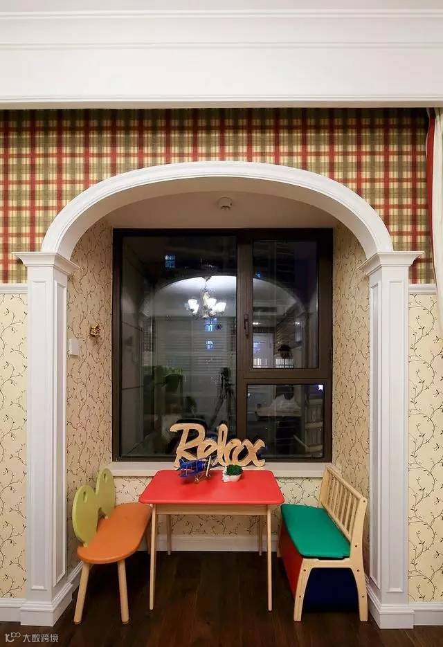 ▲白色石膏材质的拱门带有欧洲风情,红绿黄的桌椅个性张扬。就是这样一个小角落,竟惹得亲戚们争相模仿!