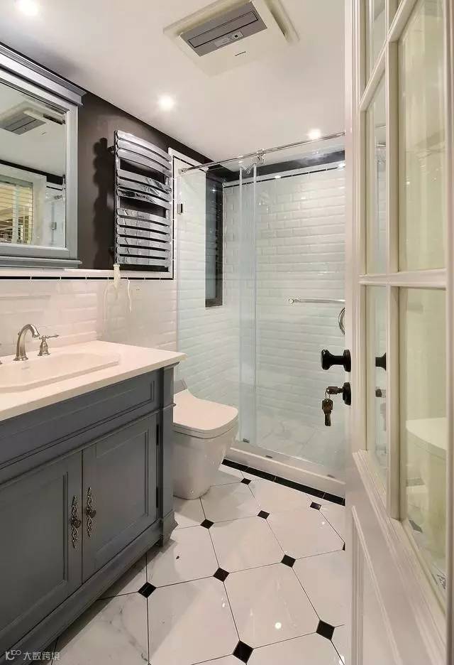 ▲大面积的白搭配深色色块,卫生间显得更简单、明朗。