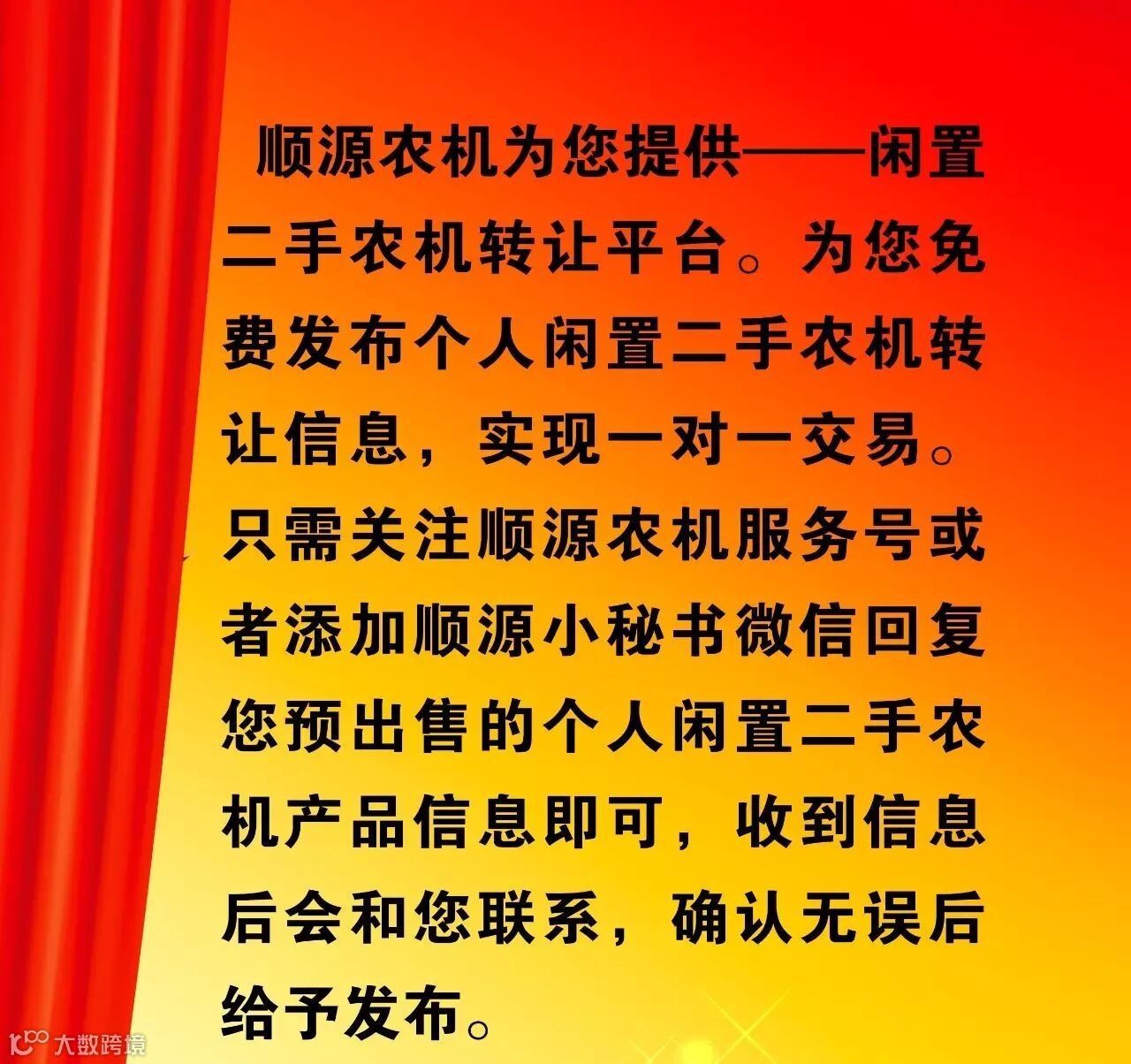顺源农机只负责信息的收集和传递,后续买卖交易不参与!
