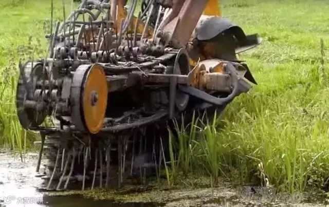 清理於堵的河道通常情况下只要一台挖掘机就足够了,可是德国人不这样认为,他们首先会用这样的切割设备把河边的杂草清理掉。