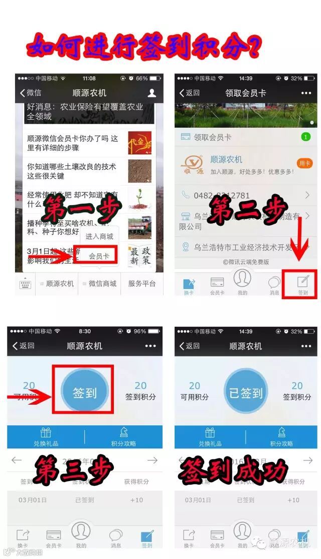 3、用户需要每天登陆顺源农机服务号“wlhtsynj”微信公众平台签到