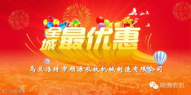 我乌兰浩特市顺源农牧机械制造有限公司为回馈广大农民用户多年来对我公司的关注与支持,我公司定于2015年1月9日至2015年2月10日期间,凡购买我公司产品的客户,均可享受如下优惠政策: