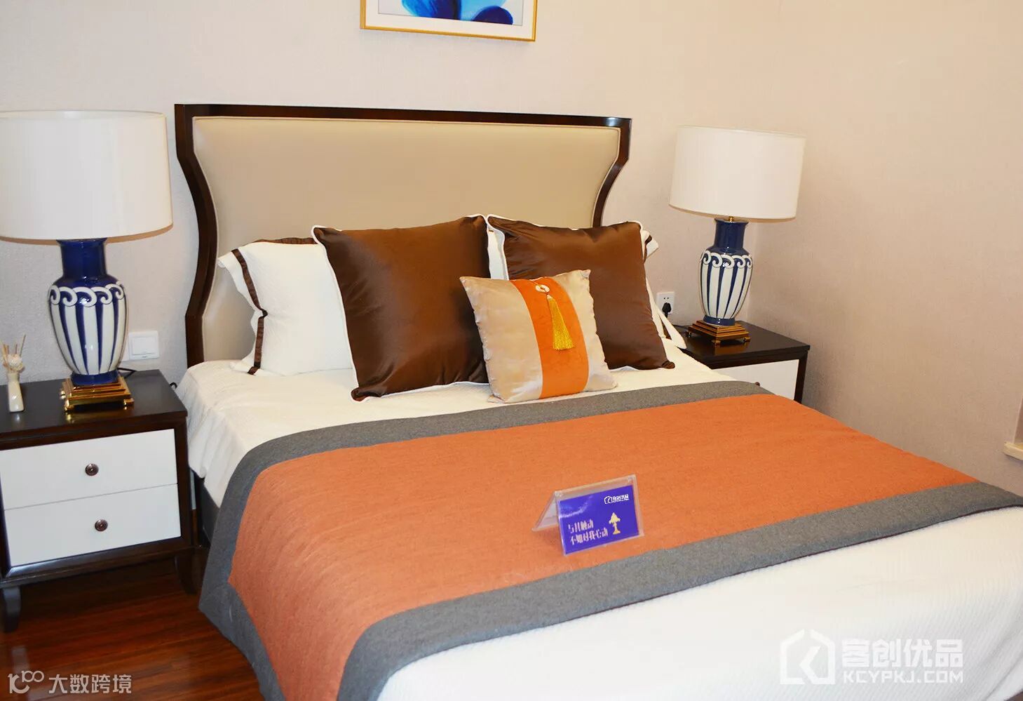 点缀橙色让时尚大气的卧房多一份诗情画意的色彩