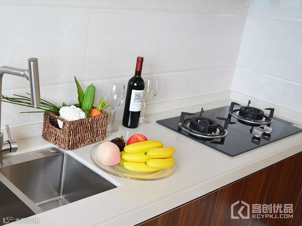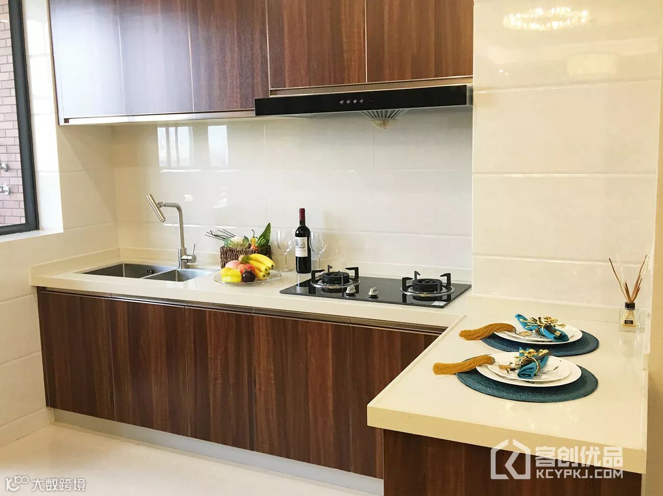 开放式厨房设计,让新中式年轻化,L型设计线条流畅,从视觉上延伸空间感