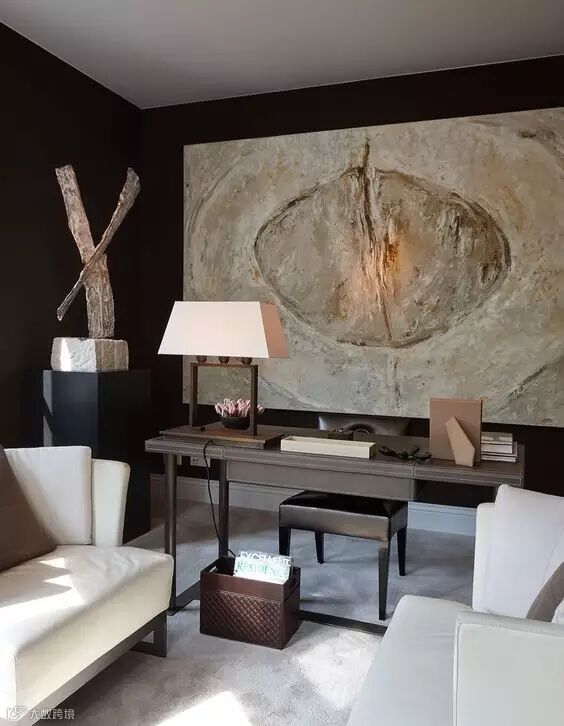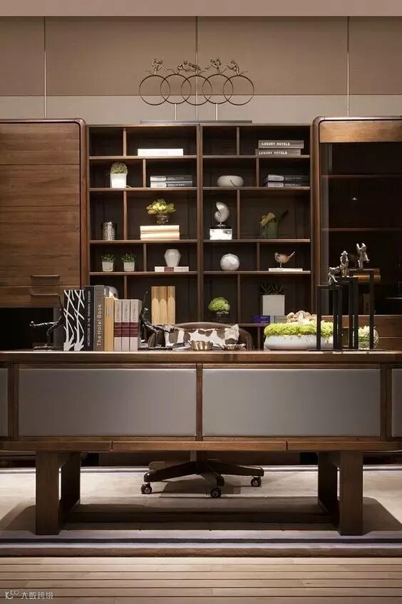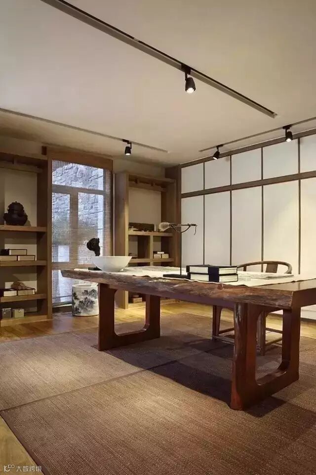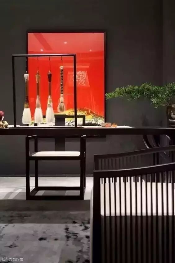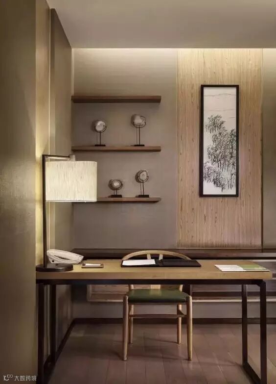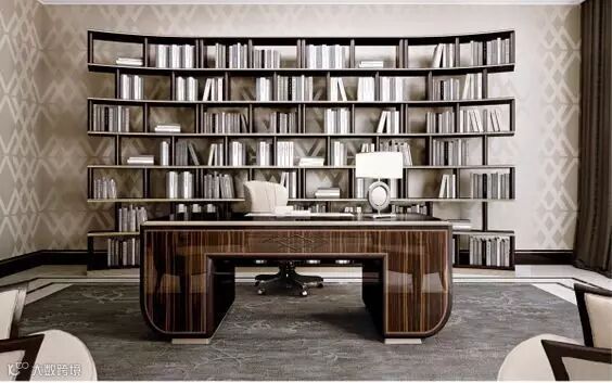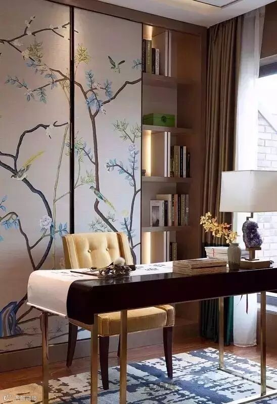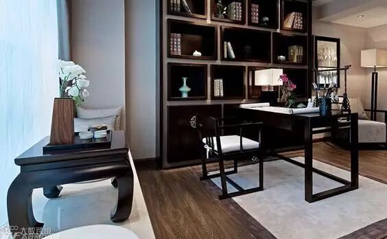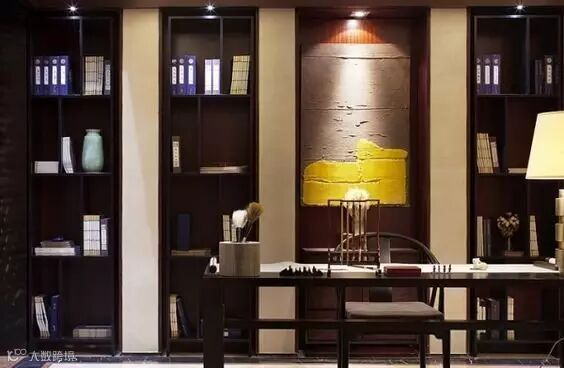 在保留中式书房原有的庄重,典雅外,新中式书房设计减少了雕刻,使家具变得简单而实用,色彩大胆突破,改变了中式书房沉闷的效果