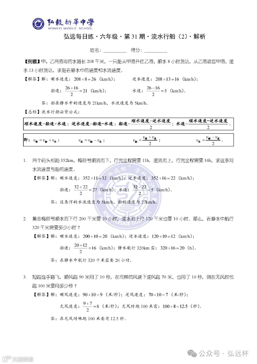 弘远每日练·六年级·第31期·解析