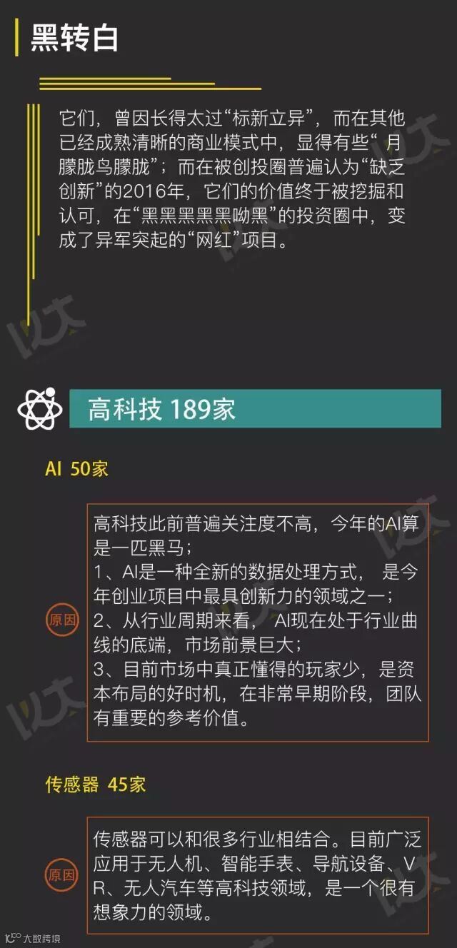 资本市场是充满机会与诱惑的“西部世界”,更是伴随考验与厮杀的“饥饿游戏”,物竞天择,适者生存。在2016年余额还剩一个月之际,以太资本综合30余位领域专精的投资经理,以及500多位早期投资人的票选、1万多位投资人的以太优选投资行为数据,总结出了现今早期创业“最黑”的30多个领域,并统计了这些领域2016年融资成功的企业数量。