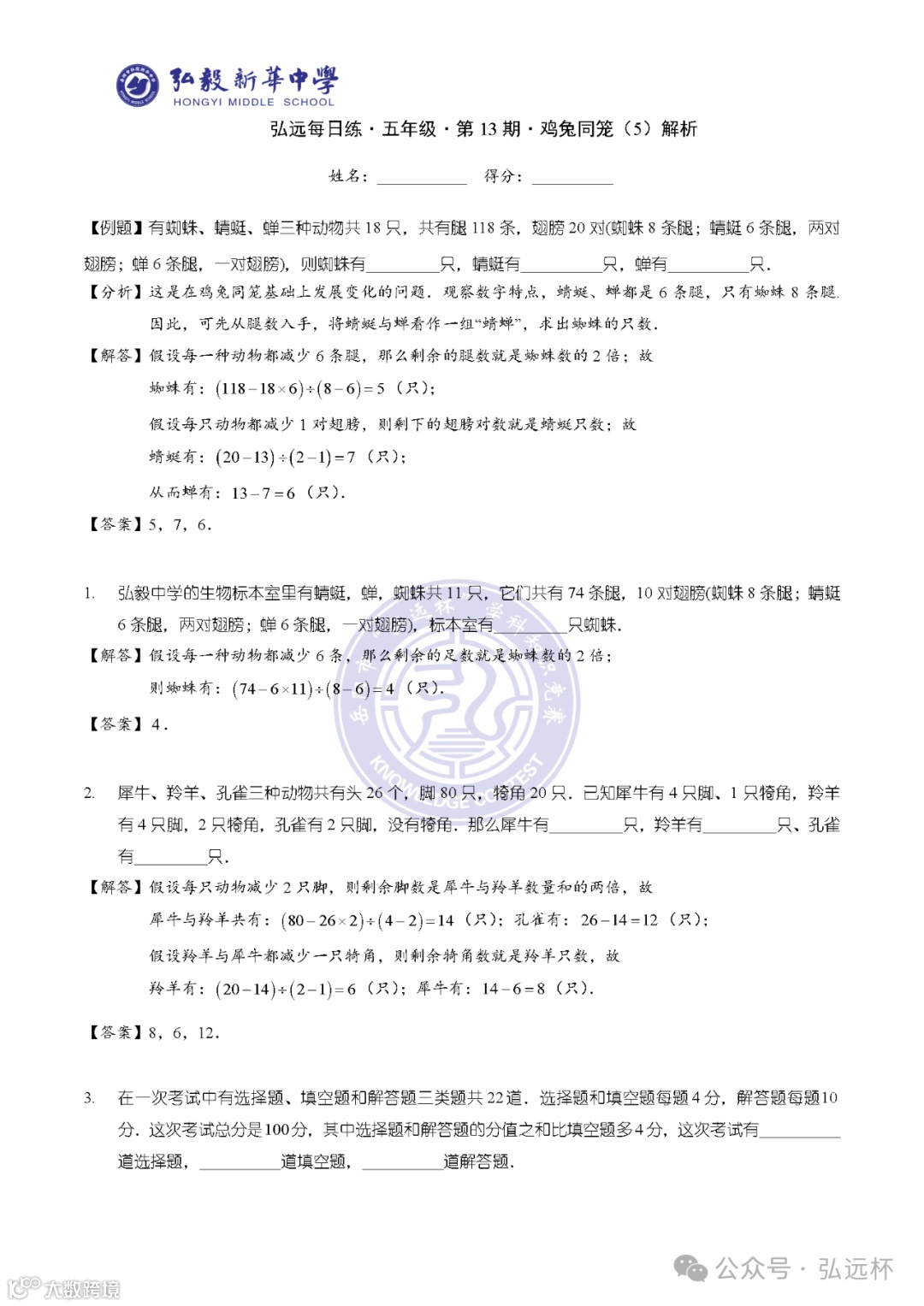 弘远每日练·五年级·第13期·解析