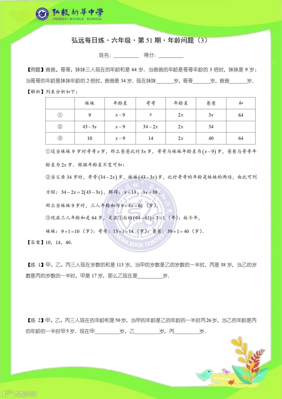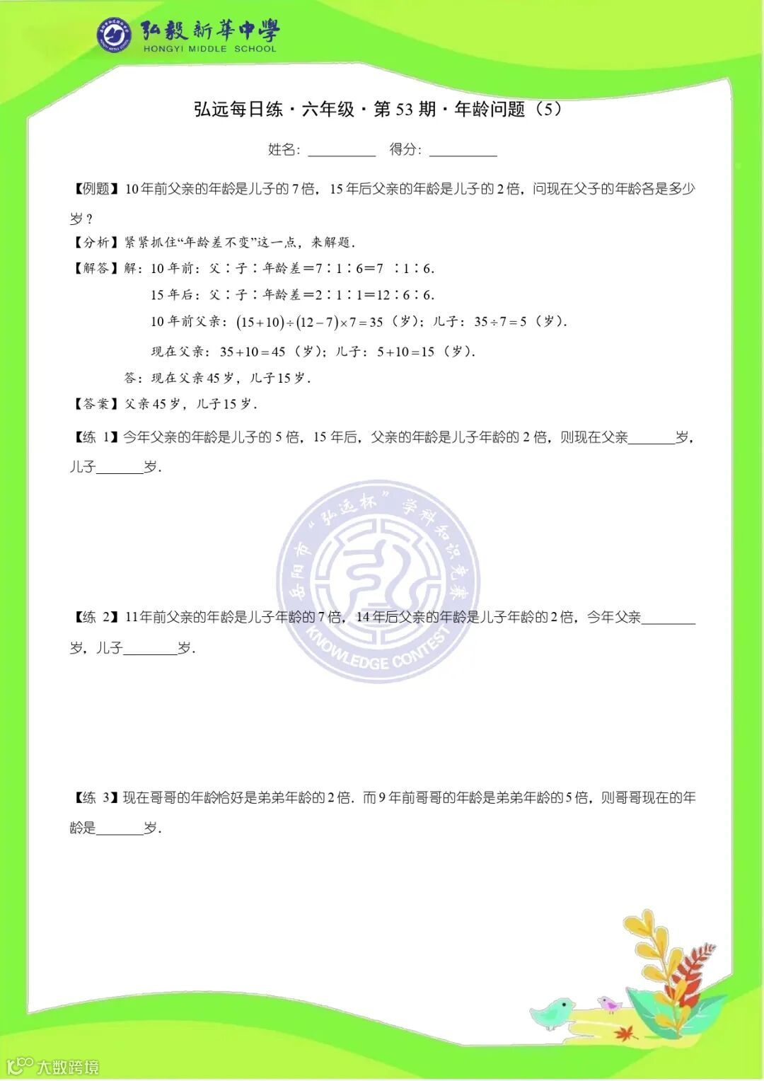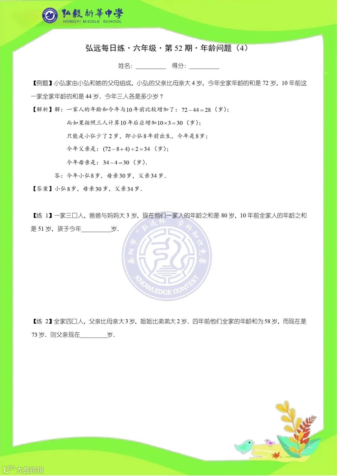 六年级打卡题图片版