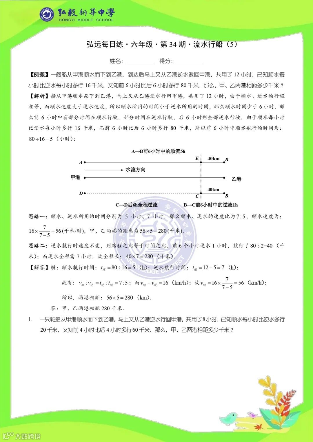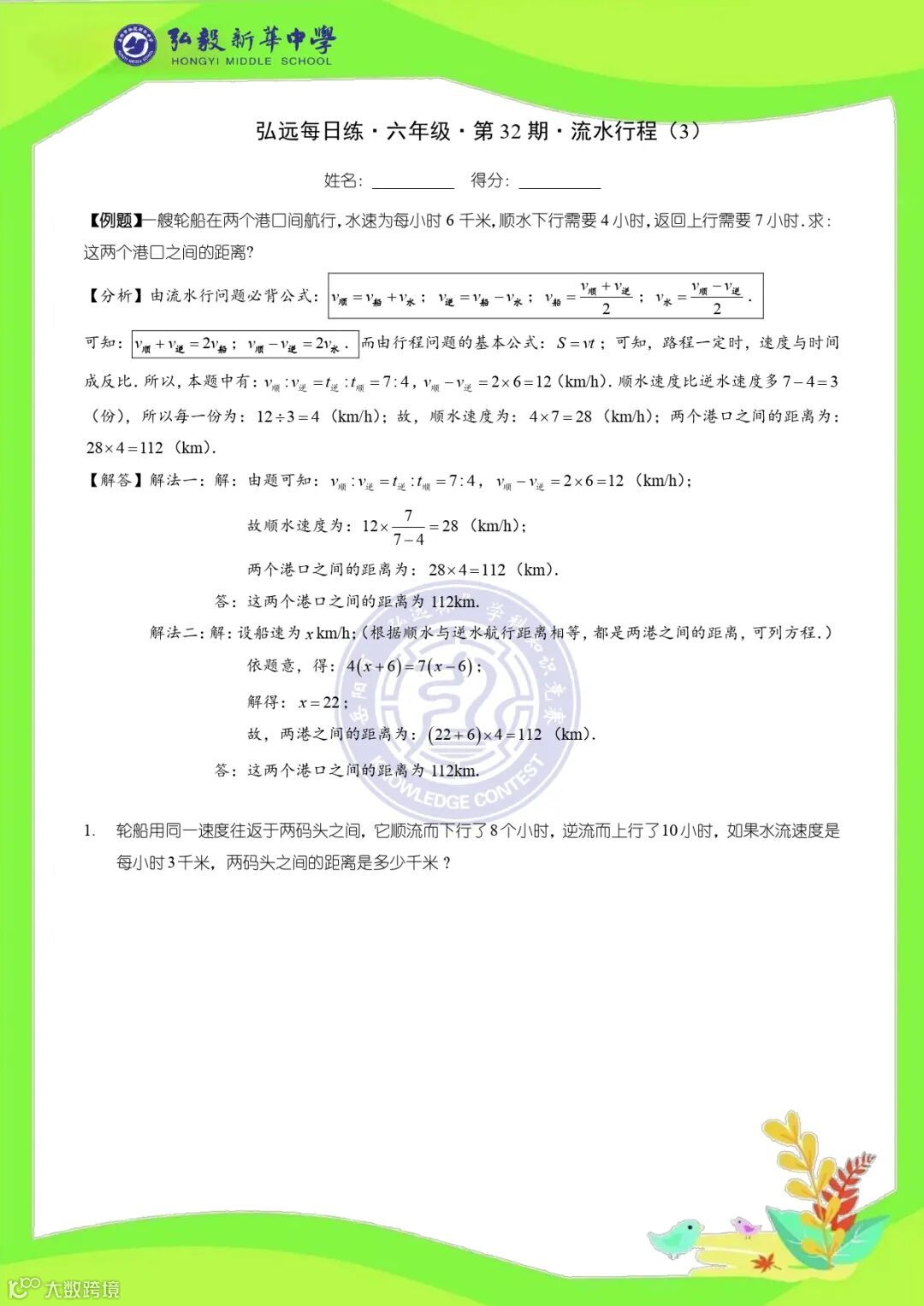 思维打卡·六年级·第07周·打卡题 弘远杯
