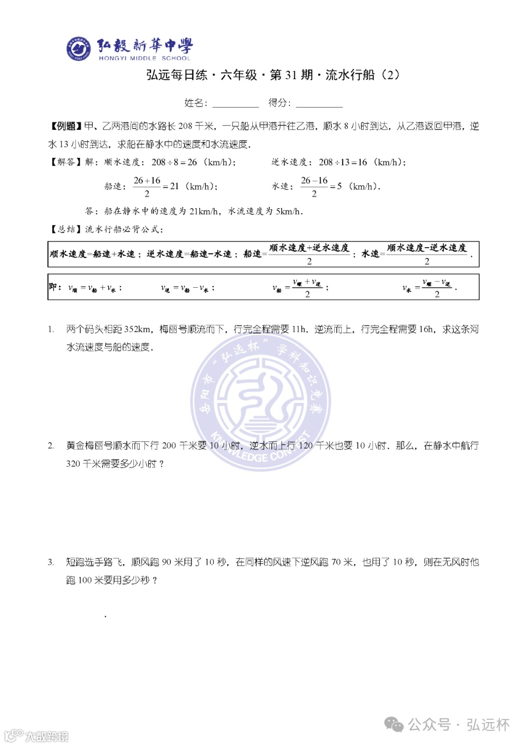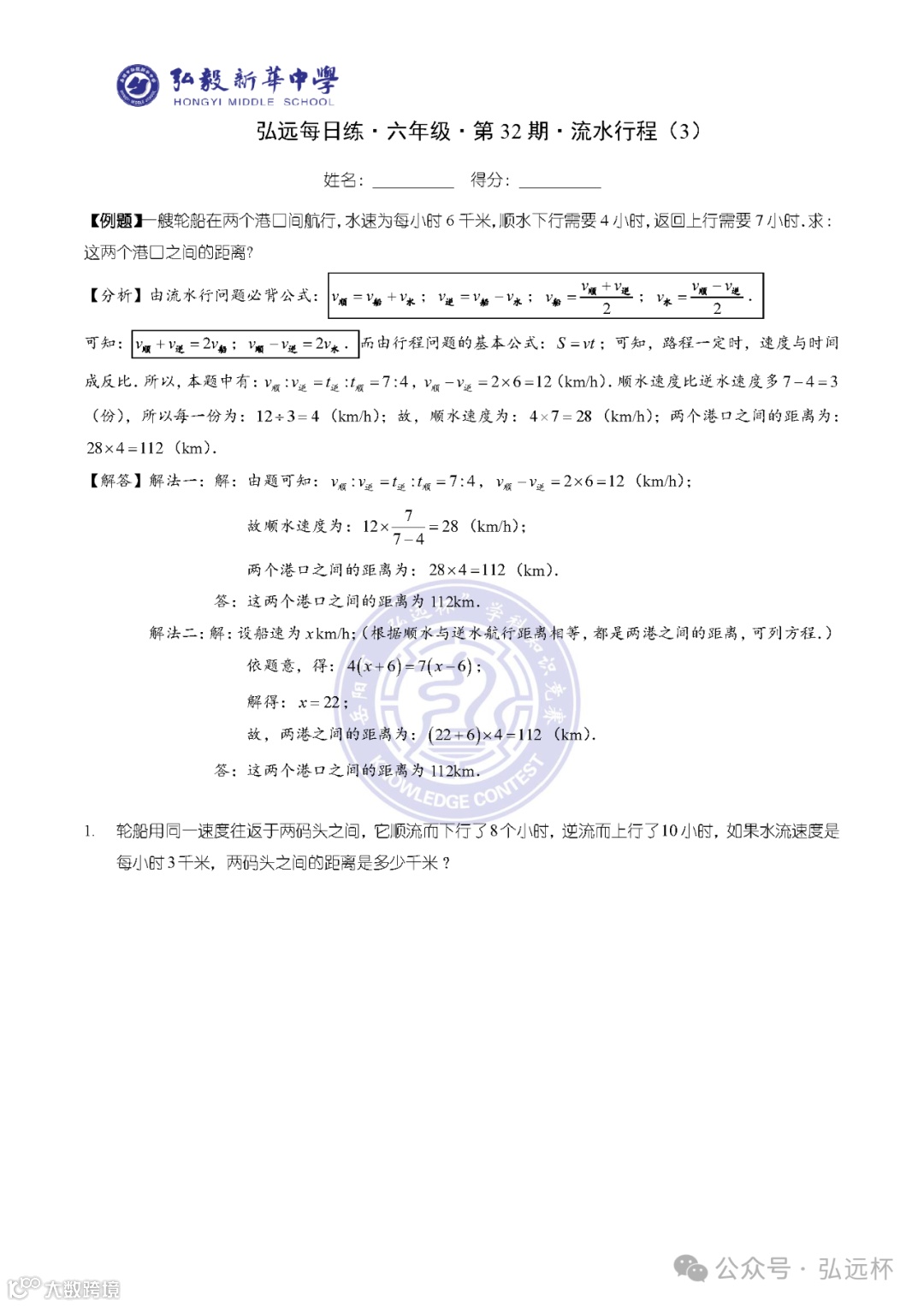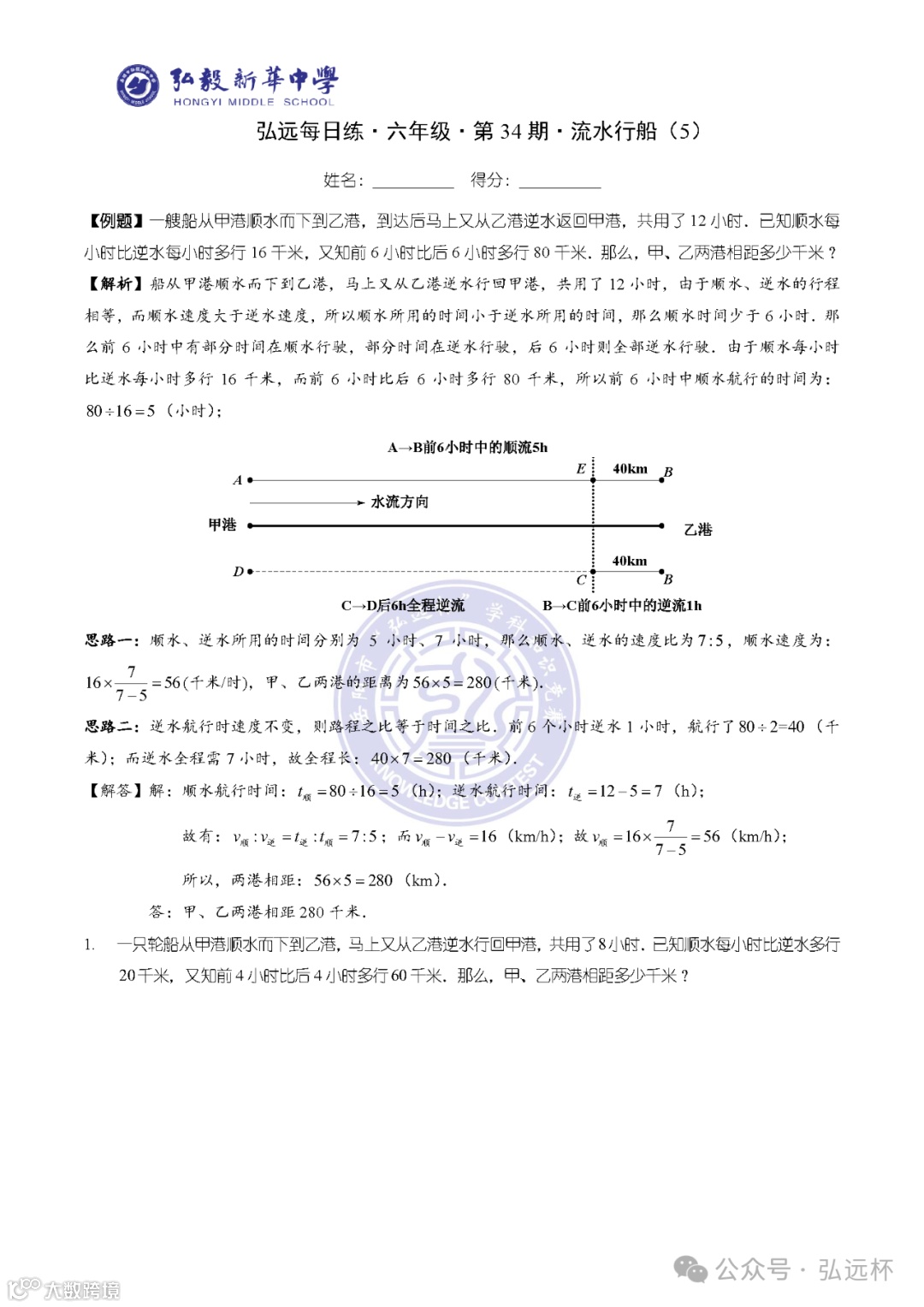 弘远每日练·六年级·第05周打卡题