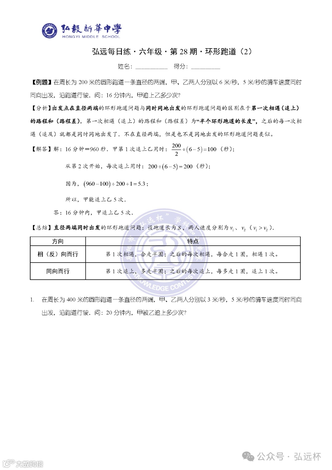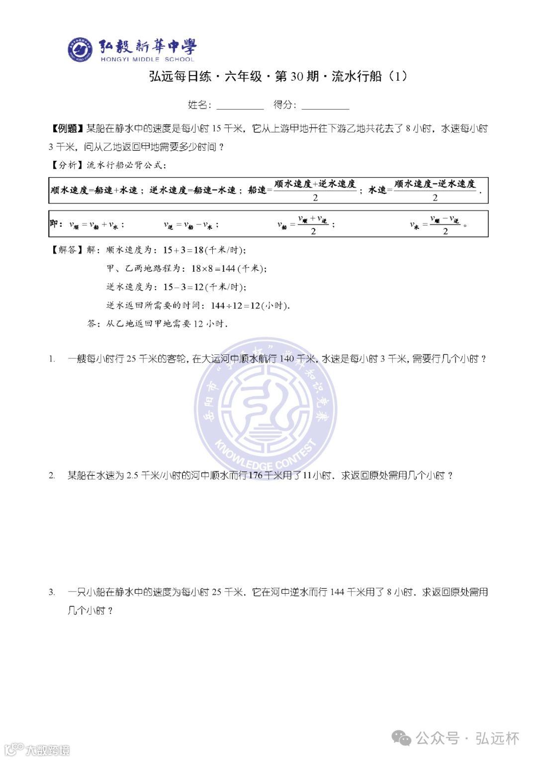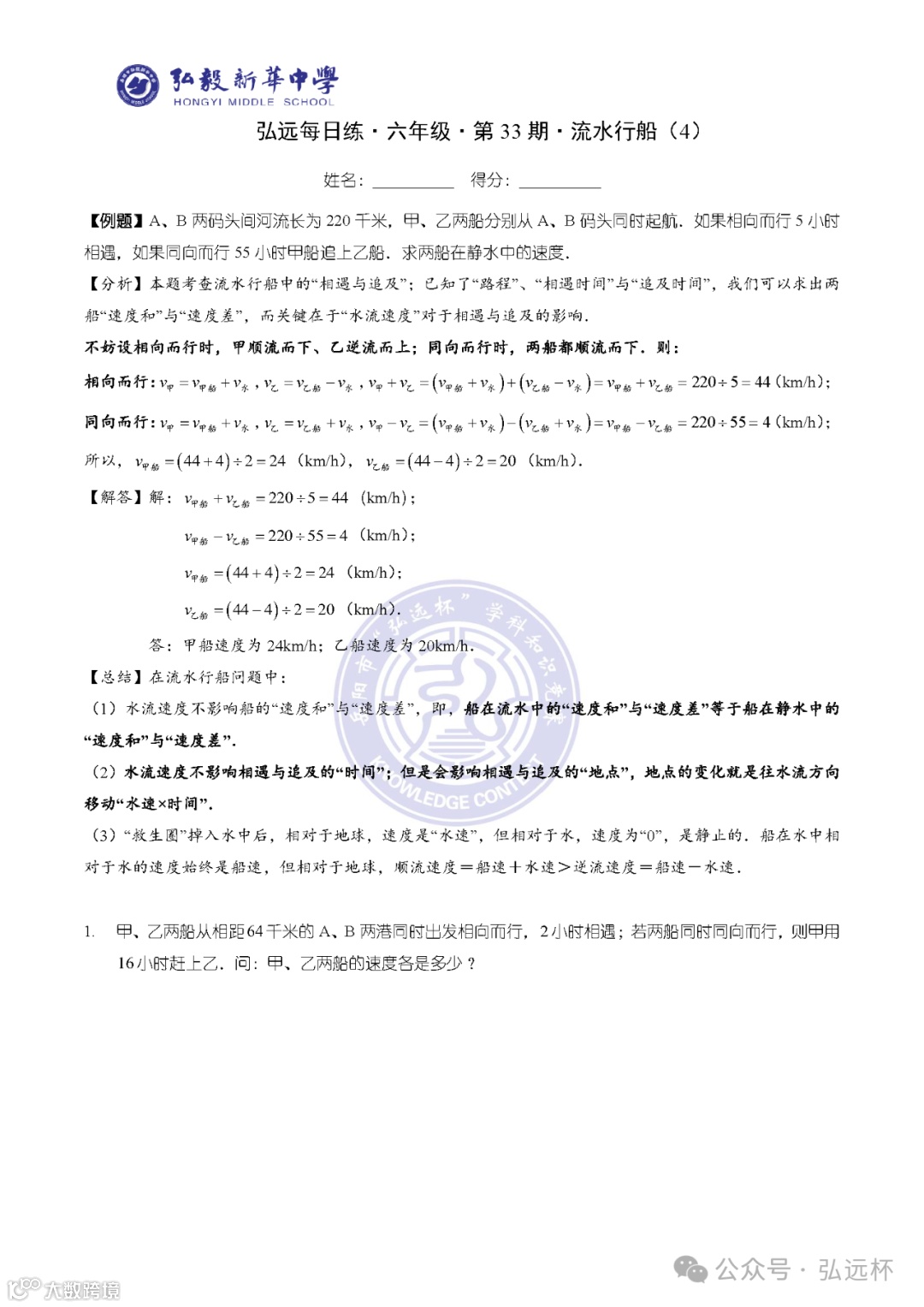 弘远每日练·六年级·第05周打卡题
