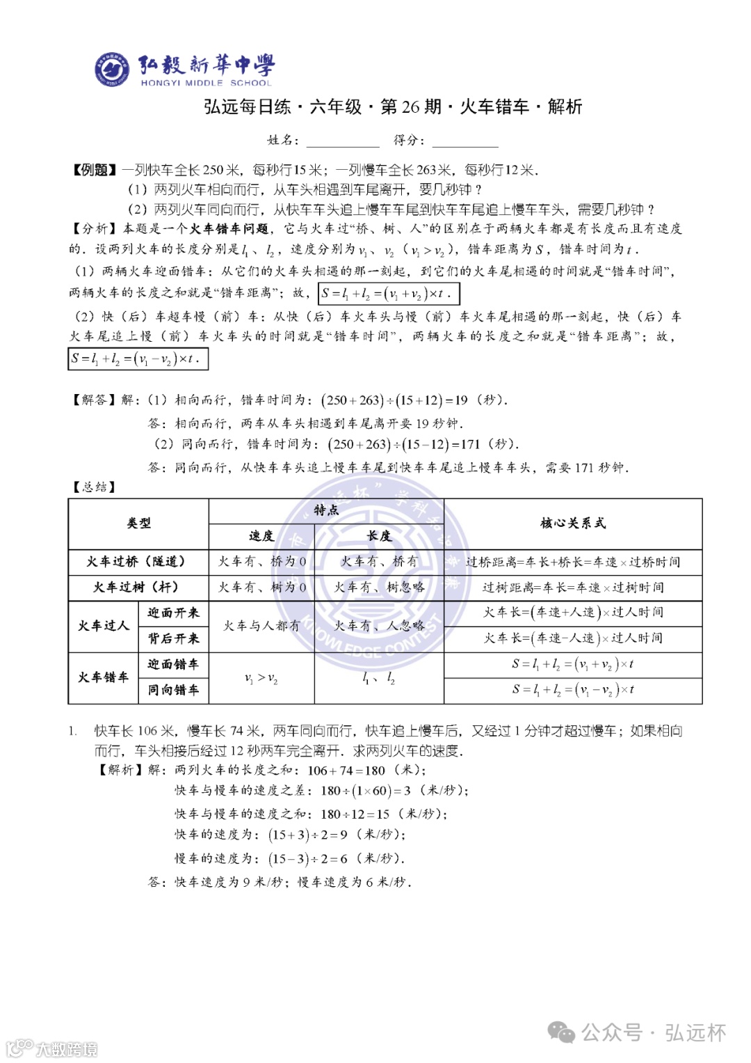 弘远每日练·六年级·第26期·解析