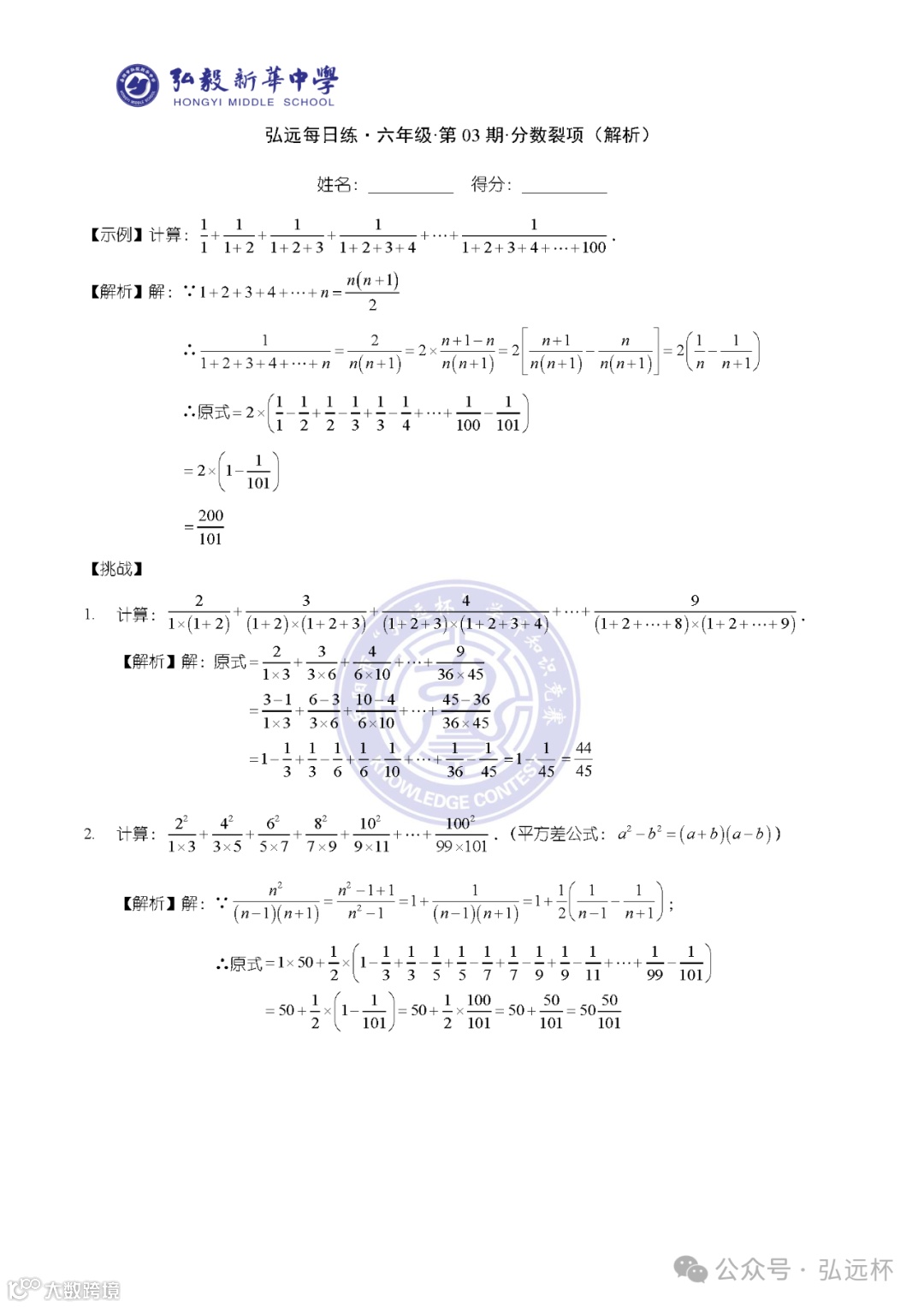 弘远每日练·六年级·第03期·解析