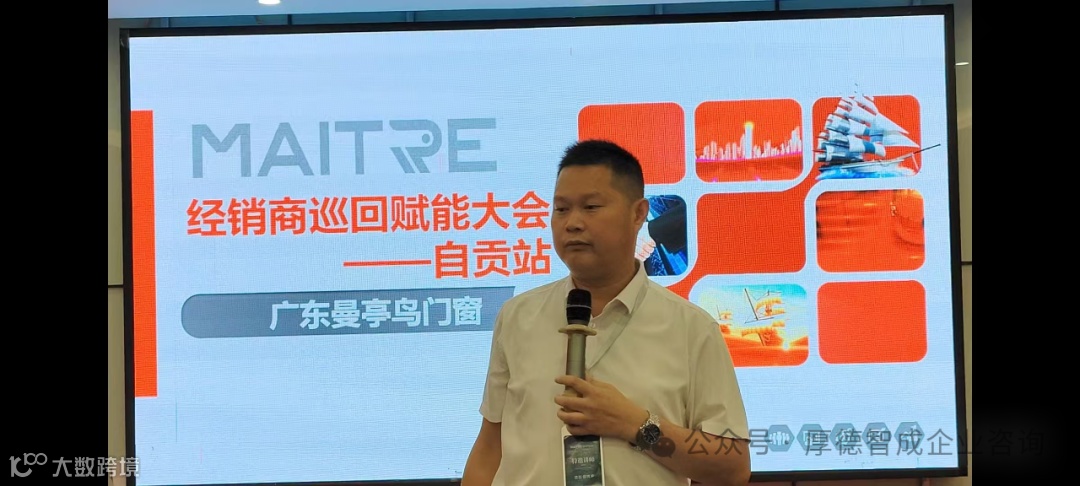 3月27日至28日,曼亭鸟品牌于广汉西园大酒店以“破界共生,智造新风向”为主题,隆重举办2025年度经销商大会。厚德智成总裁曾祥冲以《门窗终端数智化转型的破局之道》为题发表演讲。凭借20余年行业深耕经验,他犀利指出:“传统门店模式已触达天花板,唯有通过数智化工具重构用户服务链路,才能实现业绩倍增。”其著作《门窗门店老板致胜宝典》中的实战方法论,更让在场经销商直呼“醍醐灌顶”。并且,将对曼亭鸟所有想学习AI素材生成的伙伴进行免费培训,让伙伴们提高自己在自媒体素材供给方面的成本与质量。