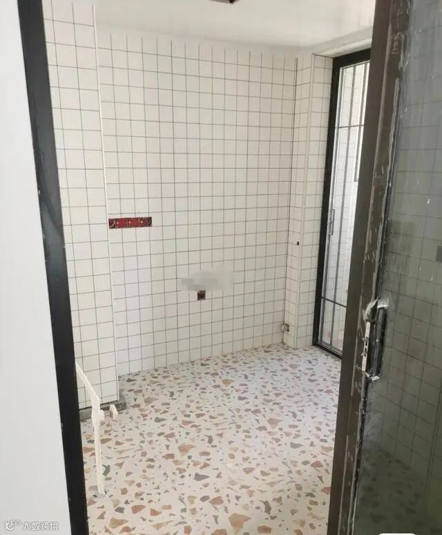 ▲地面和局部墙面使用小色块水磨石瓷砖,同步搭配小白砖,整体效果会比较耐看。下面分享一个家居博主的水磨石干区设计,可以说是最高程度还原外国网图的效果了。