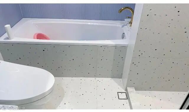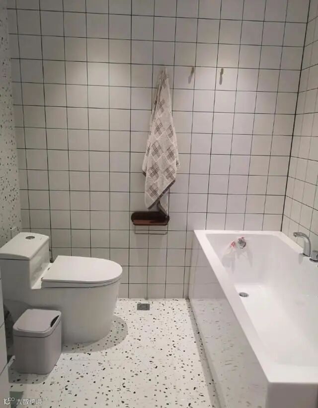 ▲上图就是仿水磨石瓷砖铺设的卫生间效果。网络上那些国外的美图靠仿水磨石瓷砖是很难实现的,对于瓷砖的花色要求很高,很容易翻车。