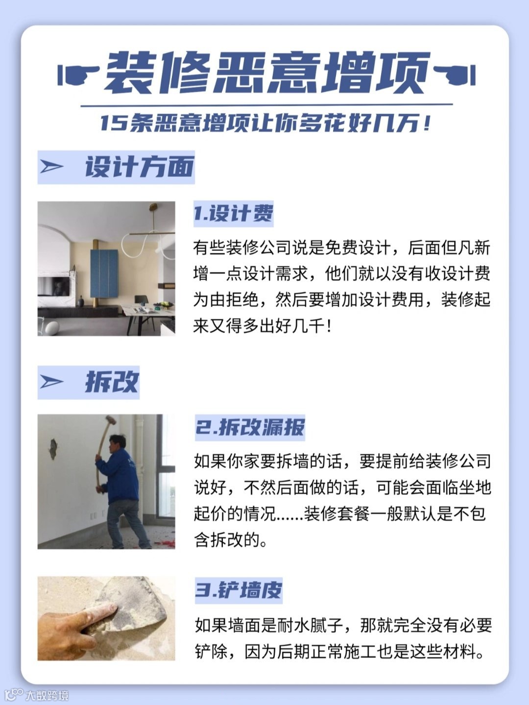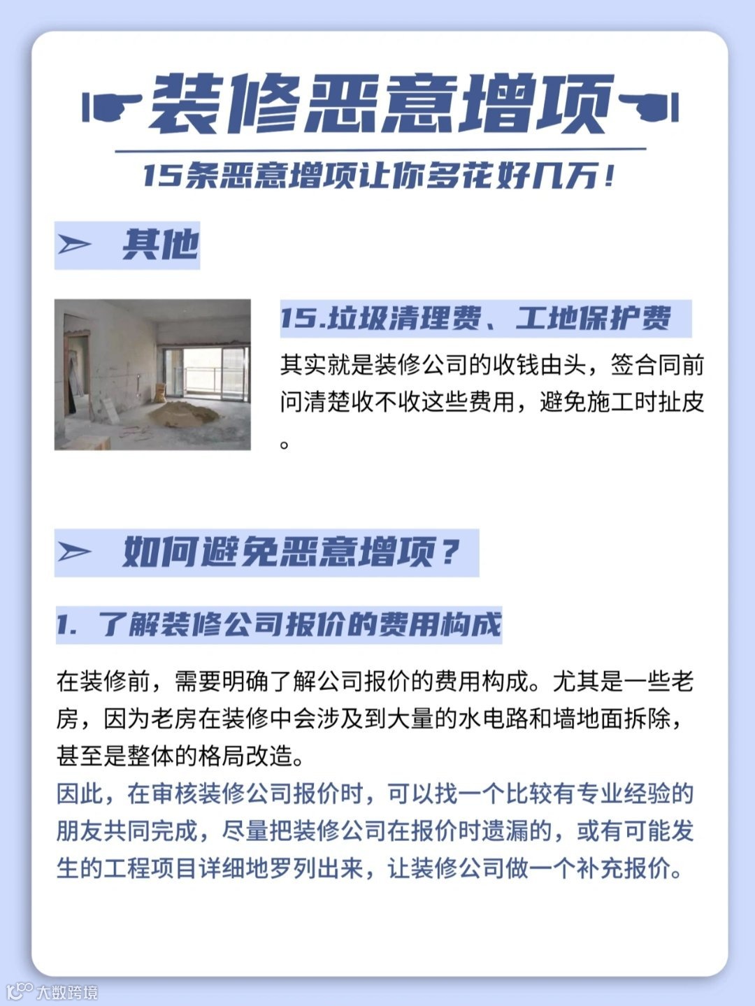 装修增项想要避免一定要自己前期做好功课,遇见装修一定要谨慎再谨慎,千万不能头脑发热。
