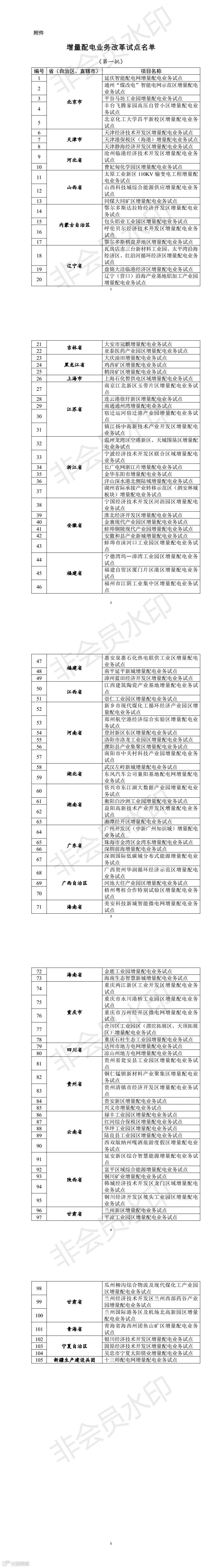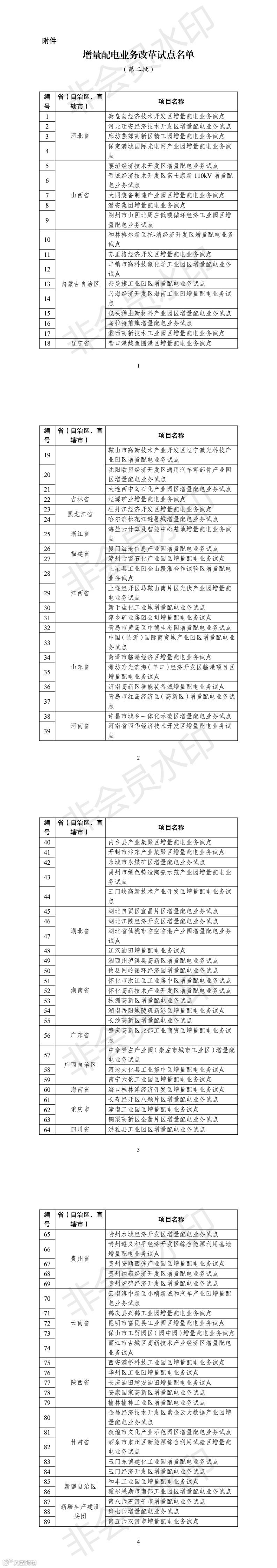 第二批增量配电业务改革试点名单: