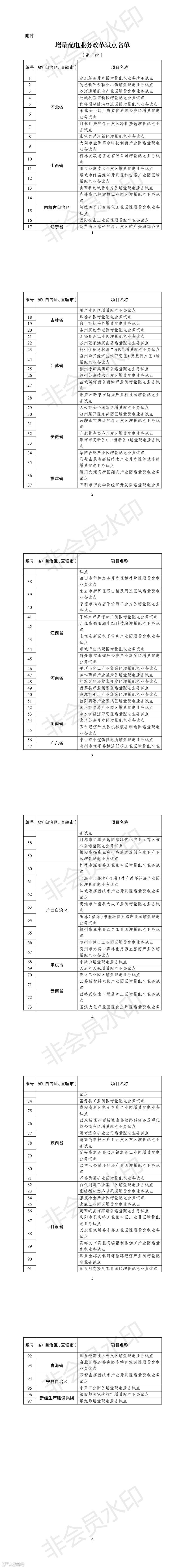 第三批增量配电业务改革试点名单: